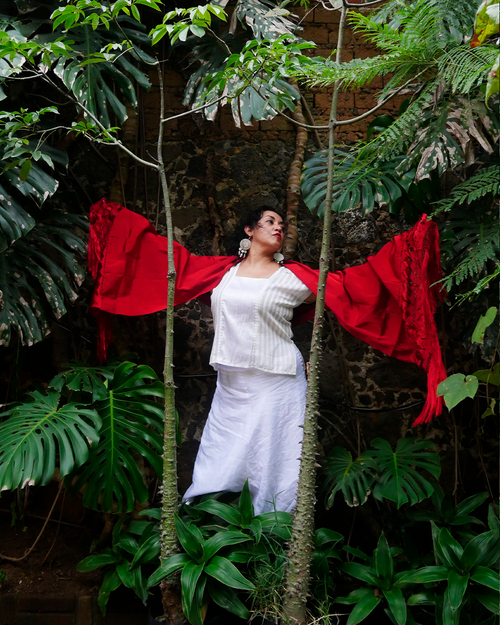 Huipil de lino con seda y bordado único. -